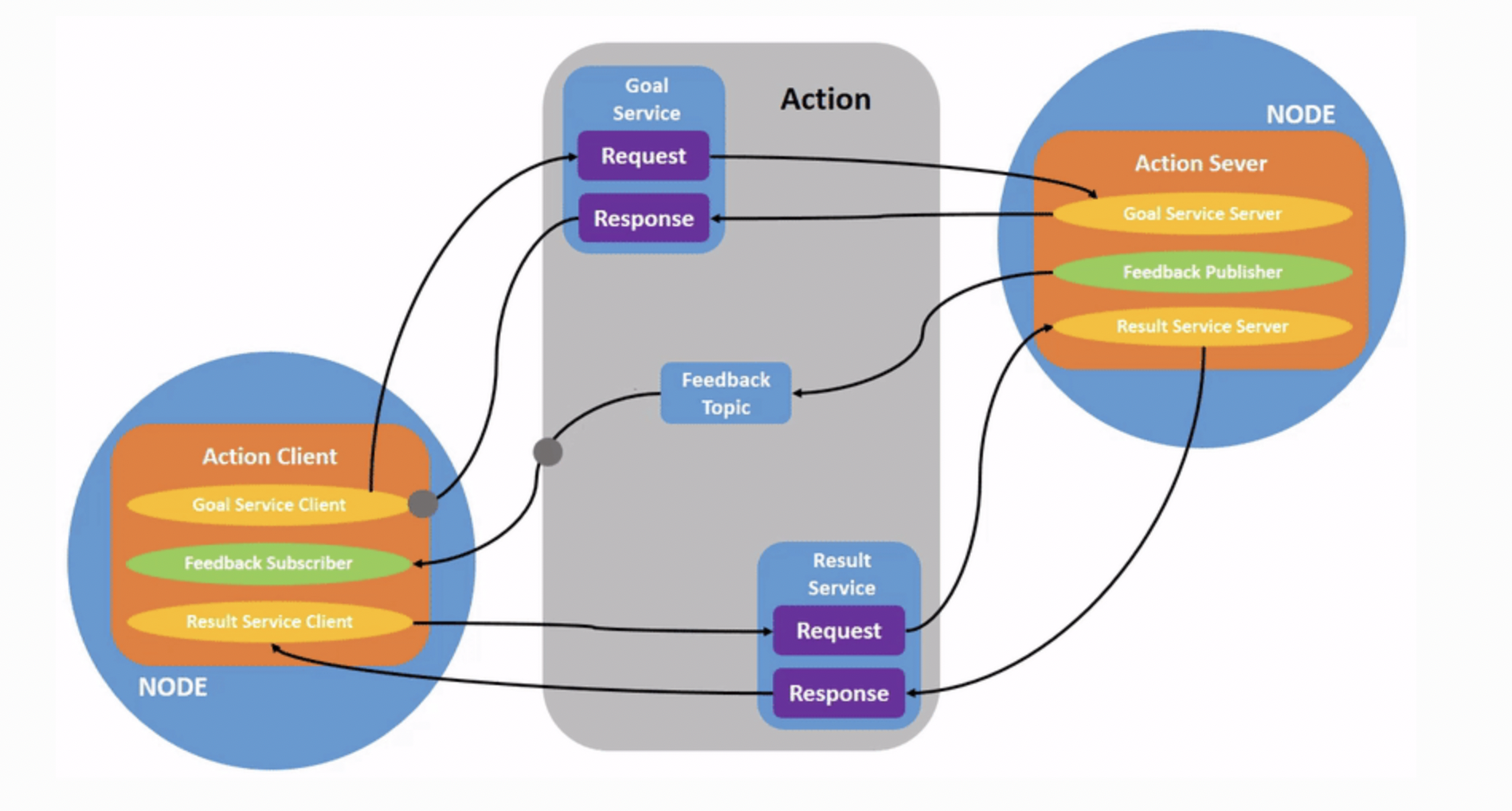 Actions are build on ROS Topics and ROS Services. Actions functionality is similar to services, except actions can be canceled. They also provide steady feedback, as opposed to services which return a single response
